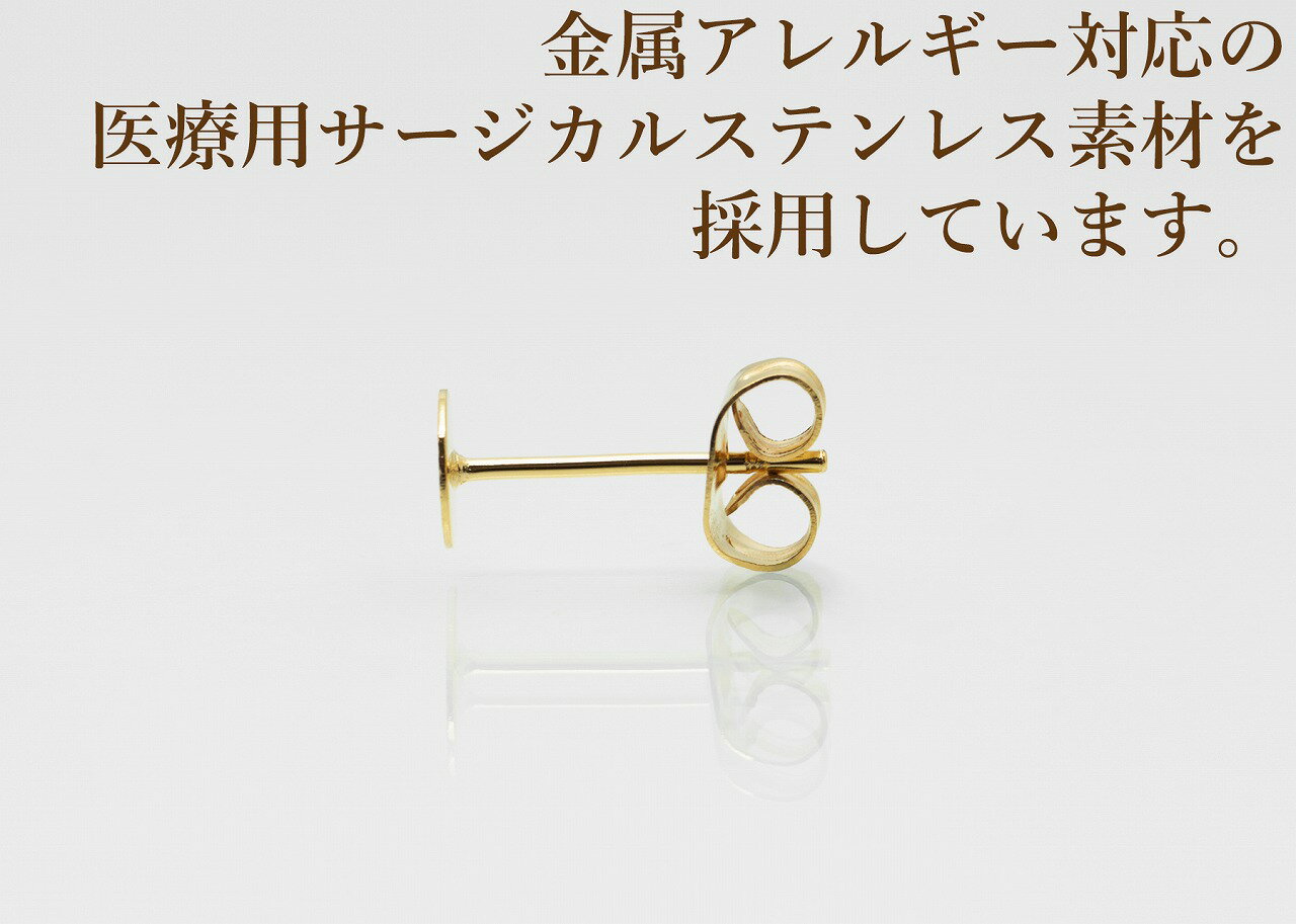 商品名 サージカルステンレス 丸皿5mm ピアス ゴールド キャッチ付き パーツ サイズ ピアスポスト:丸皿約5mm、ポスト約12mm ポスト線径約0.7mm(20G)、キャッチ:約6×4.5×3mm 入り数 100個(50ペア) 素材 サージカルステンレス316L(SUS) ニッケルフリーメッキ処理 カラー ゴールド 商品説明 丸皿(平皿台座)が付いたピアスポストです。